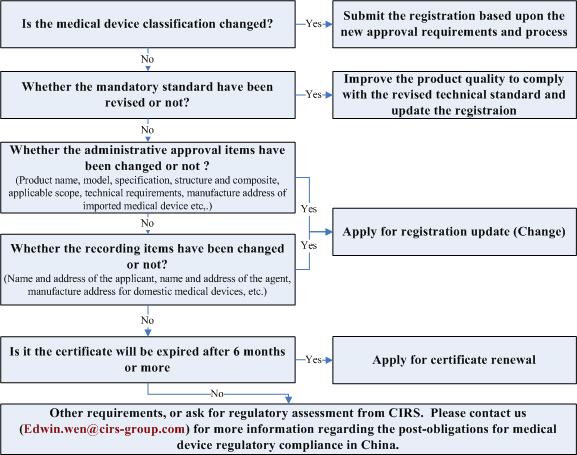 Medical device (IVD included) approval items include administrative approval items and recording items. Medical device registrant should submit the application for certificate update within 30 days from the date of item changed.