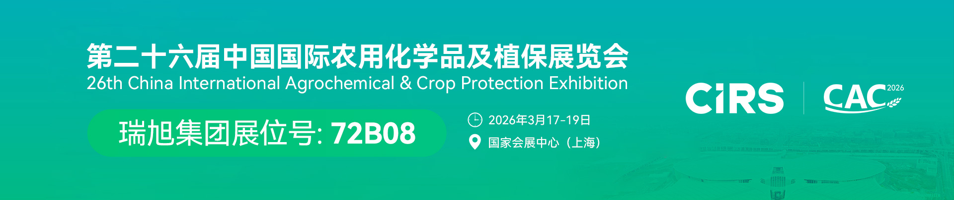 第26届中国国际农用化学品及植保展览会将于2026年3月17-19日在国家会展中心(上海)举办,瑞旭集团在7.2馆B08期待您的光临!