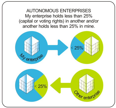 由于企业之间股权错综复杂,欧盟委员会在提出上述SME企业规模的同时,也对企业类型及不同类型企业,SME规模的计算方式进行了详细的说明。根据企业之间的股权占有关系,欧盟委员会提出了三种不同的企业类型: