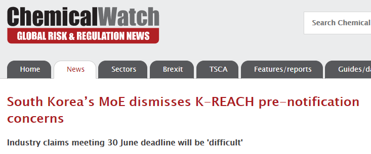 韩国环境部已经驳回了企业关于很难在6月30日截止期前完成预注册的声明。环境部表示,已经收到了来自进口商的报告。报告指出进口商很难从海外化学品企业处获得预注册所需的信息,包括物质名称。这是由于海外化学品企业担心机密商业信息(CBI)会泄露。
