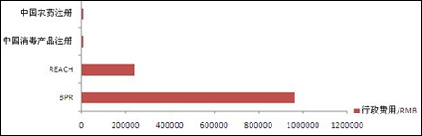 表面看来,针对中小企业费用减免额度不低,但其减免仅针对ECHA行政费用,在实验数据方面企业仍需大量的费用。此外,虽然对中小企业有所减免,但行政费用依然很高,即使申请者只做产品等同性认定,仅对产品化学分析数据进行认定,其所需的行政费用也高达2万欧元。对于新活性物质的首个产品类型许可,行政费用更是高达12万欧元,相当于近百万元人民币。相对的,中国农药登记行政费用仅需要几千元;欧盟REACH正式注册,最高吨位的行政费用也不过2-3万欧元。