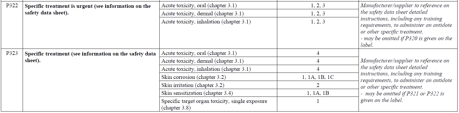 调整了“急性毒性”危害类别对应的一些防范说明。其中P322和P323是新防范说明。
