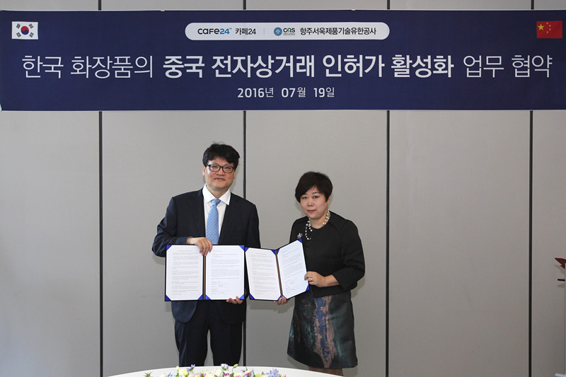 2016年7月19日上午,杭州瑞旭产品技术有限公司与韩国鑫潽瑞科技股份有限公司(CAFE24)正式签署了合作协议,这标志着两家的合作正式启动。我们将通过紧密合作,集合各方力量,发挥优势,形成整体合力,协助中韩化妆品企业高效应对化妆品管理法规。出席的双方管理层代表分别为杭州瑞旭产品技术有限公司总经理李妍、韩国鑫潽瑞科技股份有限公司(CAFE24)李在硕总经理。
