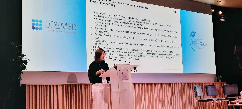 2026年4月1日至2日,由法国化妆品协会Cosmed主办的第26届化妆品法规大会(26th Regulatory Congress)在法国巴黎成功举行。为期两天的会议汇聚了来自化妆品行业的专家和决策者,围绕欧盟、亚洲、北美、南美、中东等关键市场的化妆品监管动态展开了深入交流与探讨。
