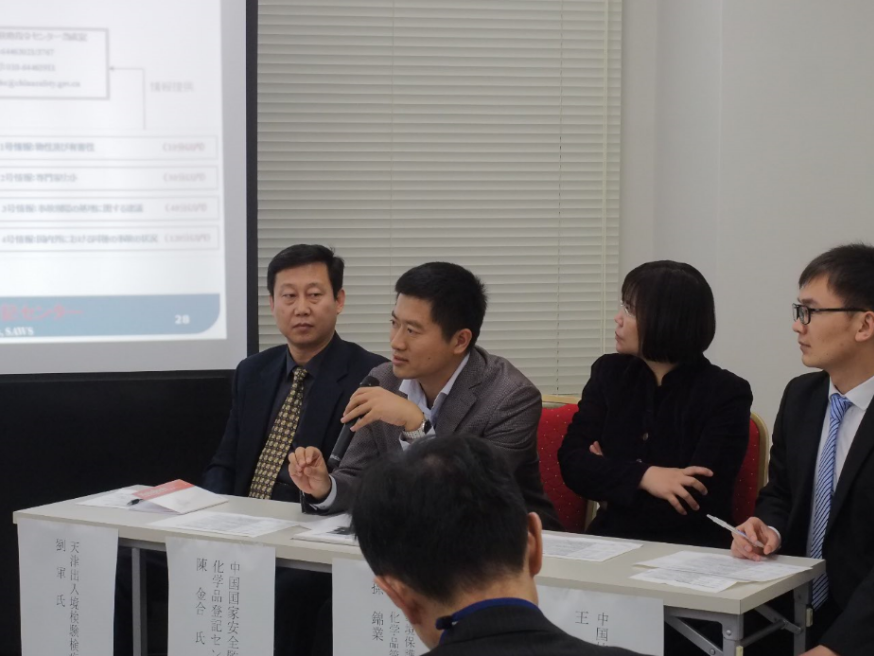 会上,来自天津出入境检验检疫局的刘军副处长, 就中国化学品进出口的监管现状及天津港管理政策发表了主题演讲,特别对天津口岸化学品现场检验情况进行了介绍。中国国家安监总局化学品登记中心陈金合,就国家危险化学品登记及实施指南进行了解读。最后,来自杭州瑞旭产品技术有限公司法规研发部的王旗威, 对中国新化学物质申报案例分析及中国GHS概要, 并重点介绍了中国新化学物质申报指南文件的修订。从会议答疑火爆情况来看,日本企业对中国化学品法规中的危化登记、危化目录指南,以及进出口对特殊化学品的检验和危化品的仓储、新化学物质指南修订表现出了极大兴趣。