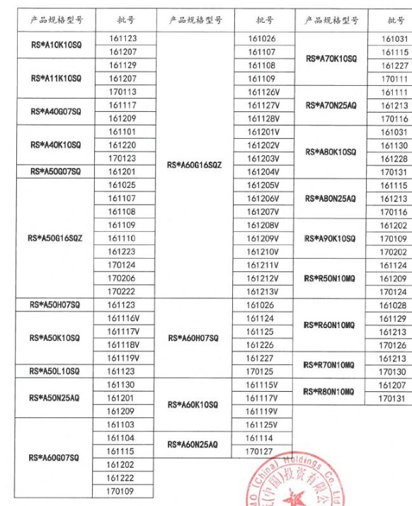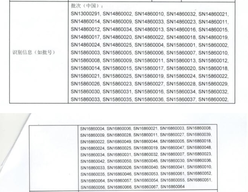 | 公司名称 | 产品名称 | 召回原因 | 识别信息 | 召回等级 |
