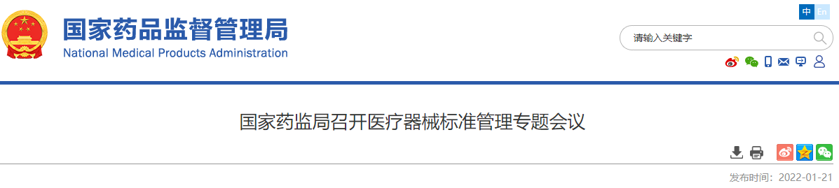 2022年1月18日—19日,国家药监局组织召开医疗器械标准管理专题会议,听取各全国医疗器械标准化(分)技术委员会和技术归口单位(以下简称标委会)2021年度工作汇报。国家药监局党组成员、副局长徐景和出席会议并讲话,器械注册司有关负责同志主持会议。