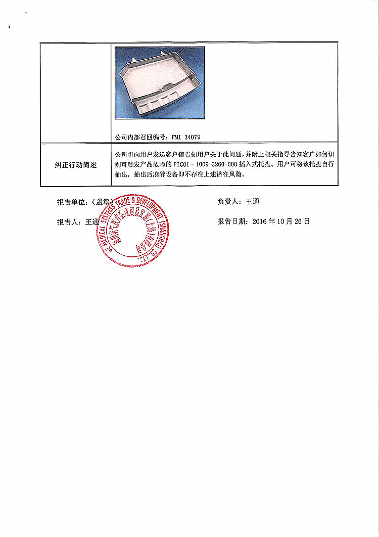 通用电气医疗系统贸易发展(上海)有限公司报告:企业发现涉及产品存在安全隐患,如果暴力关闭选配有插入式托盘的下层储存抽屉时,可能会导致麻醉设备处于非正常状态。公司决定召回相关产品,本次召回级别II级,涉及产品的型号、规格及批次等详细信息见《医疗器械召回事件报告表》。