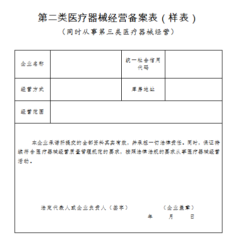 附件:第二类医疗器械经营备案表(同时从事第三类医疗器械经营)