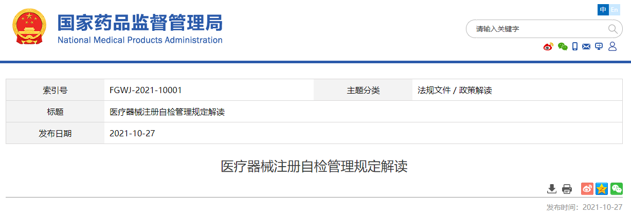 国家药品监督管理局组织制定的《关于医疗器械注册自检管理规定》(国家药品监督管理局公告第126号,自印发之日起施行,以下简称《规定》),已于2021年10月21日印发。现就《规定》的制定背景、主要内容和重点问题说明如下: