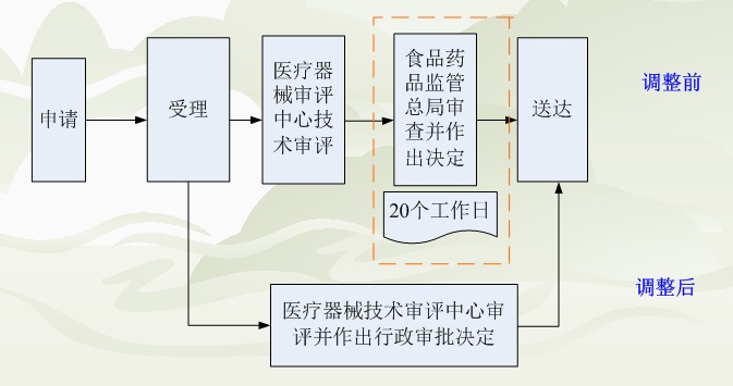 原注册审批和临床试验审批包含四个环节:受理——技术审评——行政审批——结果送达,技术审评和行政审批分别由技术审评中心和总局负责,在技术审评结束后,总局在收到技术审评意见的20个工作日内做出行政审批的决定。
