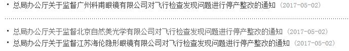 4月26日总局对一批医疗器械生产企业进行了飞行检查,其中江苏海伦、广州科普、北京自然美光学三家公司被停产整顿,当日总局便发布了关于这三家公司停产整改的通告。5月2号,总局再次向当地食品药品监督管理局发布关于监督这三家企业整改的通知。