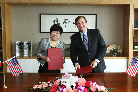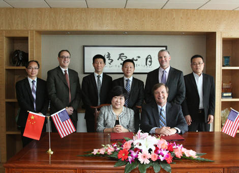 瑞旭技术总经理李妍女士和3E Company CEO Mr. Robert Christie 签约合影