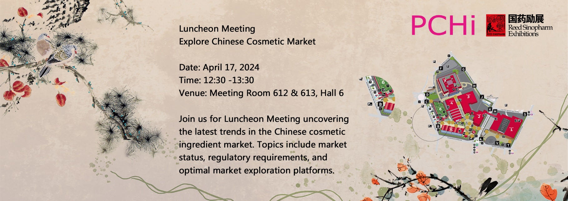 Luncheon Meeting on Chinese Cosmetic Market Insights is an exclusive session that will uncover the latest trends in the Chinese cosmetic ingredient market.