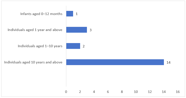 As shown in Figure 4 below, among the FSMPs approved for registration in Q1 of 2026, the largest number of products were intended for people aged ten years and above, totaling 14. This was followed by products for individuals aged one year and above (3 products), those aged 1–10 years (2 products), and infants aged 0–12 months (1 product). Overall, the distribution reflects coverage across the entire life cycle while addressing key population groups, with a particularly significant proportion of products targeting adults.