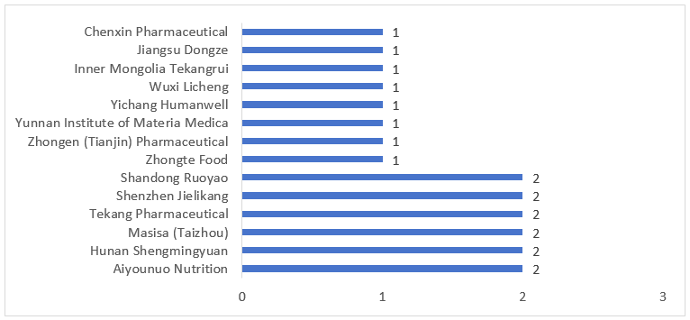 The 20 FSMPs approved for registration in Q1 of 2026 involved 14 applicant units. As shown in Figure 6 below, six companies, including Aiyounuo, each obtained approvals for two FSMPs, while the remaining eight companies each received approval for one FSMP