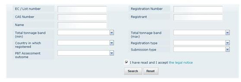 企业可登陆ECHA官网进行查询 查询地址,搜索一栏由原先的仅通过CAS号或EC号查询渠道扩展成通过CAS号、EC号、注册号、注册主体、注册吨位、注册主体所在国家、注册类型(中间体/常规用途/通报物质)及提交类型(联合提交/单独提交)等进行搜索的多通道。