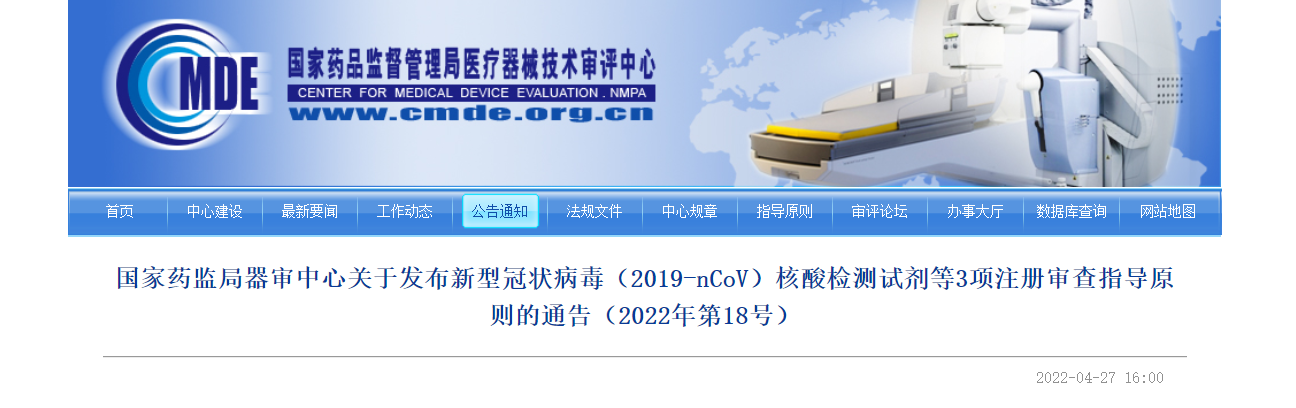 为进一步规范新型冠状病毒相关检测试剂的管理,国家药监局器审中心组织制定了《新型冠状病毒(2019-nCoV)核酸检测试剂注册审查指导原则》《新型冠状病毒(2019-nCoV)抗体检测试剂注册审查指导原则》和《新型冠状病毒(2019-nCoV)抗原检测试剂注册审查指导原则》现予发布。