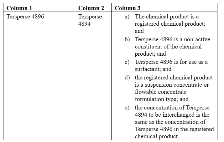 这意味着,希望将Tersperse 4896替换为Tersperse 4894的登记持有人,在满足上述条件下,无需再向APVMA提交Item 12项下的变更登记申请,仅需提交“通知”便可更新产品配方。
