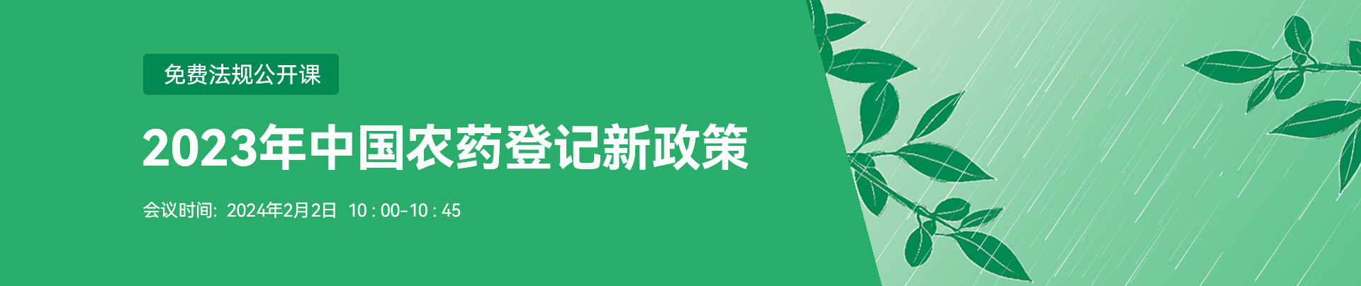中文 | 2024年2月2日 | 10:00-10:45(北京时间) | 秦美玲女士, 法规注册工程师 瑞旭集团农化事业部 |