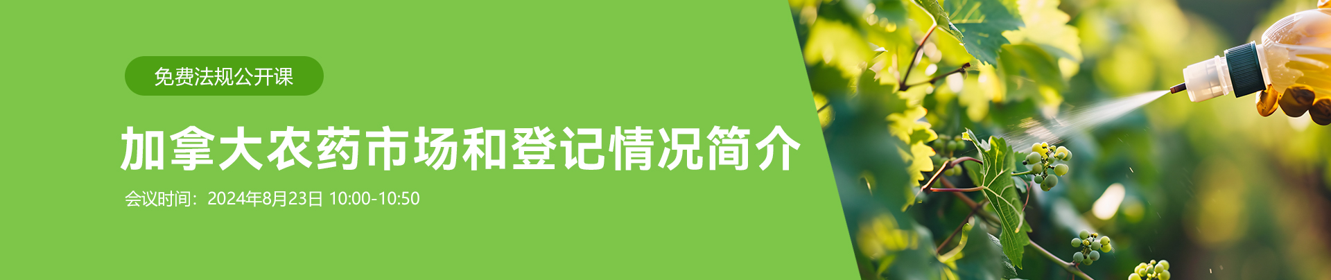 哪些农药在加拿大的用量比较大,主管当局当前对于农药的批准状况如何,加拿大登记一个相同产品时需要提供哪些数据?瑞旭集团农化事业部针对不少企业在开拓加拿大农药市场前重点关注的问题,将于8月23日举办线上法规公开课《加拿大农药市场和登记情况简介》,旨在解答中国企业出口农药产品到加拿大的登记疑问提供帮助。本次公开课免费,诚邀您参加!