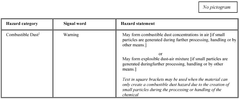 2. 添加了可燃粉尘(combustible dust)的定义,并更新了相应的危险性说明。