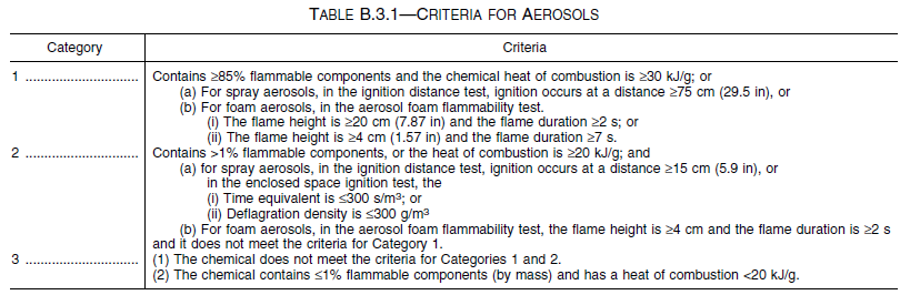 3. 更好地区分了气溶胶与加压气体。将“易燃气溶胶”改为“气溶胶”,基于燃烧特性和燃烧热,气溶胶被分为3个类别。其中,不含易燃成分的气溶胶被划为类别3。