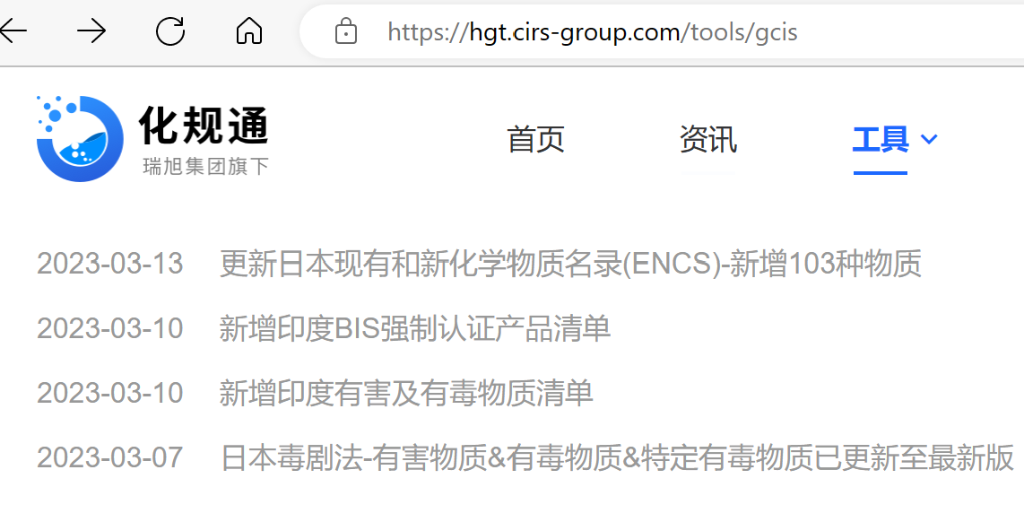 印度BIS强制认证清单可以通过化规通全球化学品名录查询工具(GCIS)查询啦!