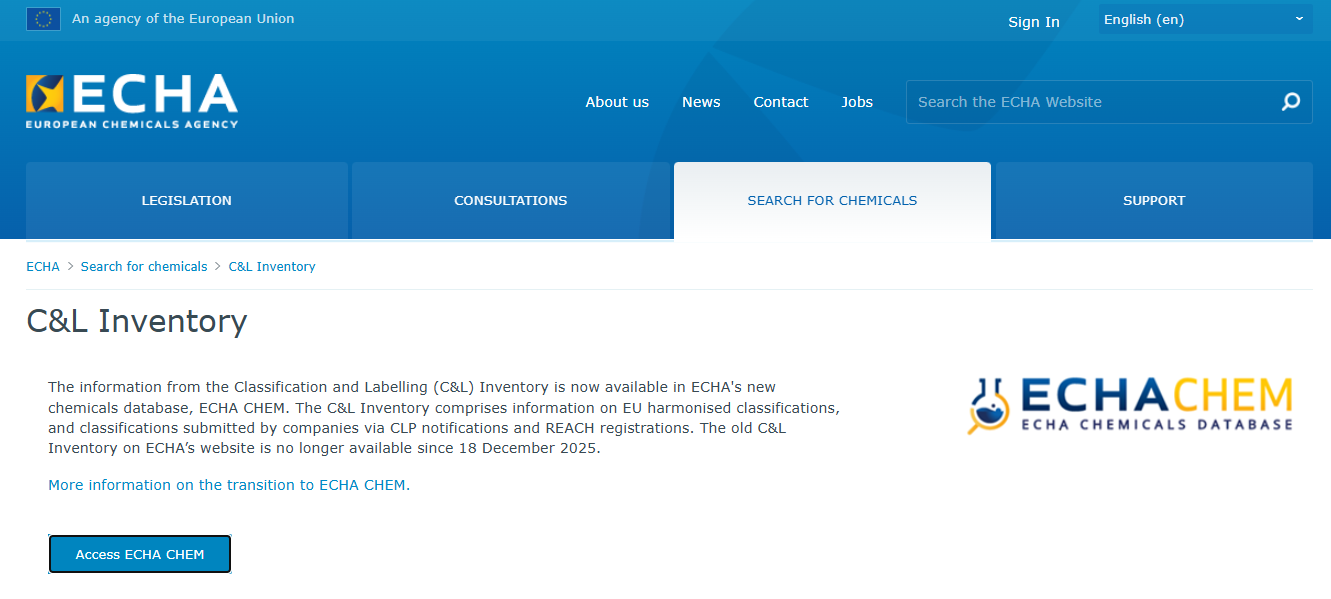根据修订后的CLP法规第42条,从2026年7月1日起,对于已经向ECHA提交过分类与标签通报(C&L notification)的,其通报者名称将被公开在C&L Inventory中。团体通报将显示提交代表的名称。对于来源于REACH注册的分类信息,将公布注册人的名称。