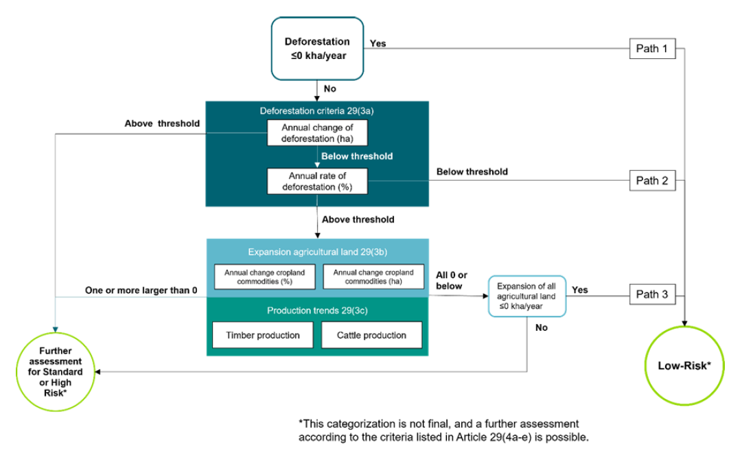 国家分类系统主要基于对欧盟森林砍伐条例第 29 条第(3)款所列标准(以下简称 “量化标准”)的评估,并可考虑第 29 条第(4)款所列标准(以下简称 “定性标准”)。
