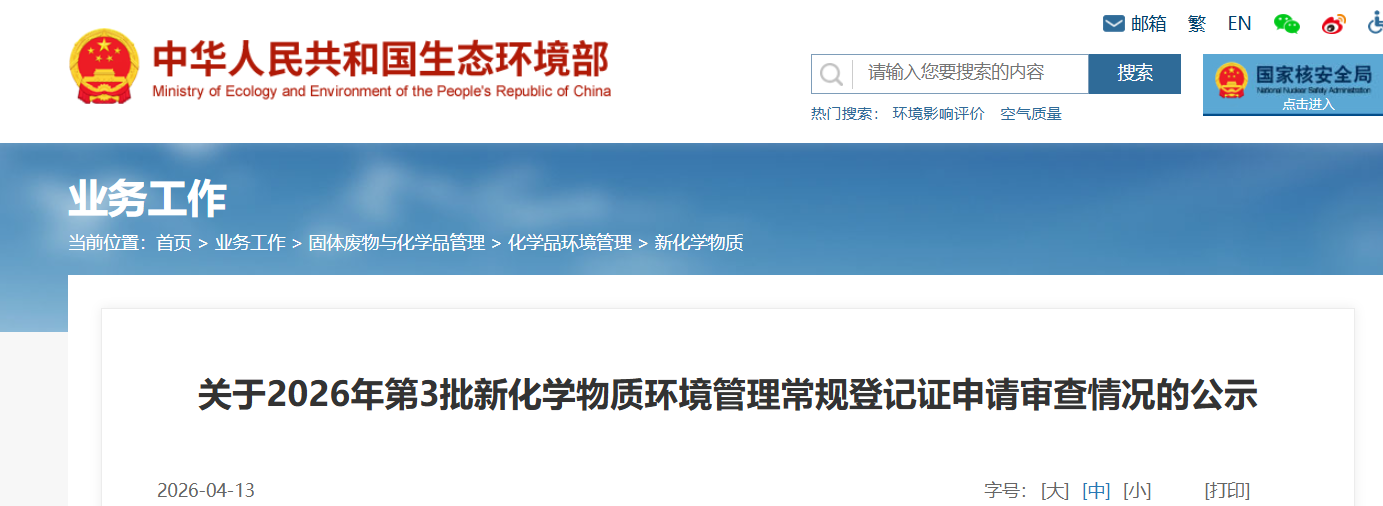 2026年第3批拟批准的新化学物质环境管理常规登记证明细表