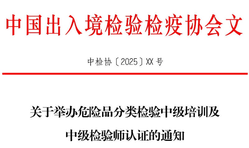 为落实市场监管总局提高行业人员素质的指示精神,满足CNAS对物流安全与货物运输检验机构的认可要求以及市场对危险品检验检测人员技术能力提高的需求,中国出入境检验检疫协会按照ISO/IEC 17024要求对危险品分类检验人员开展人员认证工作。根据《危险品检验人员认证方案》危险品检验人员分为初级检验师、中级检验师和高级检验师三个等级,获得认证的人员在提高自身专业技能的同时,将满足危险品检验鉴定机构人员的能力和资质要求。为此,中国出入境检验检疫协会拟于2025年12月3日-5日在厦门举办“危险品分类检验中级培训班”,符合中级检验师要求的人员考试合格将颁发中级检验师认证证书。现将相关事宜通知如下: