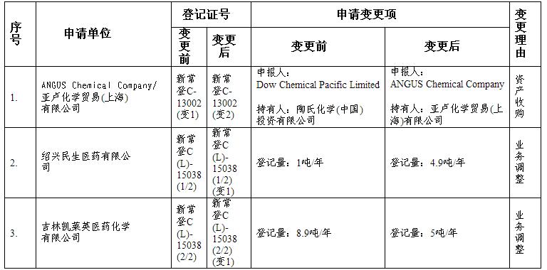 | 2. | 受14073 | 烯基醇 | Hokko Chemical Industry Co., Ltd. | 常规申报 | 危险类 |