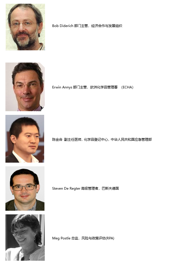 15:40-17:30 | 讨论3:化学品数据的质量以及获取 | 主持人:Hugo Waeterschoot管理顾问, 欧洲金属协会 组员: 1. 经济合作与发展组织(OECD)Bob Diderich, 部门主管 2. 环境毒理学和化学学会(SETAC ASIA): 游静教授 3. 财团法人安全卫生技术中心(Sahtech):Jowitt Lee总监 4. 欧洲化学品管理署(ECHA):Erwin Annys,部门主管 |