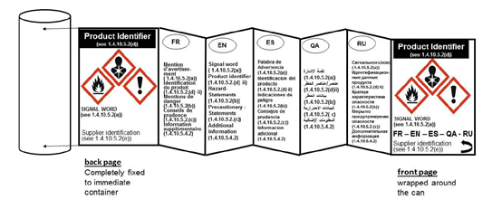 如果包装很小,并且包装中的化学品有大量危险性说明,或标签上的信息需要使用多种语言,导致该包装无法贴下标签,那么企业就能使用折叠标签(见图1)