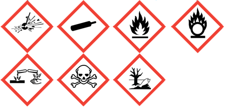 在GHS实施之后,很多企业对自己的SDS和标签进行了更新,采用了符合本国GHS标准。由于GHS多个分类尤其是理化分类和运输分类一致,在这种情况下,有一种快速甄别的办法,只要出现下列7个图标之一即可认定为是危险货物,其中,腐蚀性图标对应的H318: 严重眼损伤/眼刺激1类除外,仅仅具有这个分类的化学品不属于危险货物。