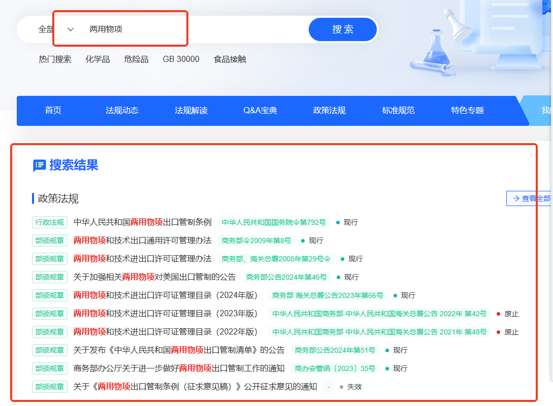 - 如果企业想了解更多的法规信息,也可以通过关键词检索化规通法规数据库,即可快速定位相关的法规和管理办法。