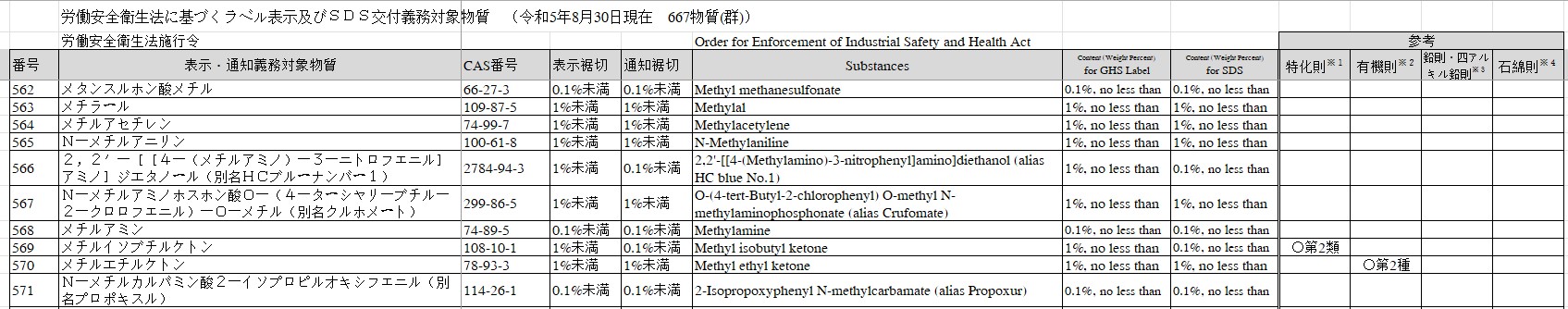 近期,根据《工业安全与健康法》(ISHA),日本厚生劳动省(MHLW)更新了标签和安全数据表(SDS)交付义务对象物质清单,截止至2023年8月30日,共列出了667种物质。