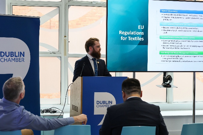 会议聚焦欧盟针对纺织品、电子电器产品的关键检测要求及包装法规的最新趋势与发展。瑞旭集团爱尔兰公司(CIRS Ireland)的合规专家Adam Hembrecht 和 周昊 对相关法规要点进行了深入解读。他们结合瑞旭集团旗下实验室希科检测(CIRS C&K) 的实际案例,向与会嘉宾展示了具有高度实操性的合规解决方案。
