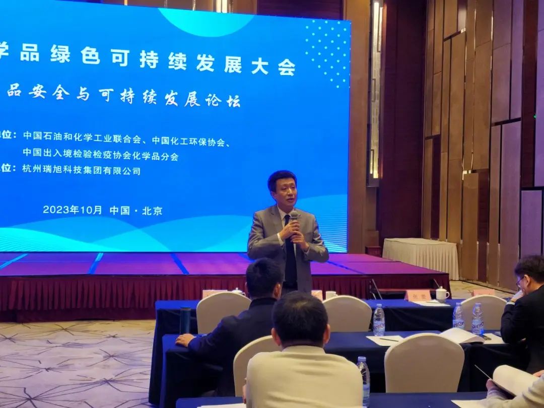 为贯彻落实党中央国务院关于加强化学品风险防控的要求,保障生态环境安全,促进化学品产业链供应链优化升级和绿色可持续发展,中国石油和化学工业联合会于2023年10月10-12日在北京成功举办了“首届中国化学品绿色可持续发展大会”。本次大会设置了四个专题论坛,其中分论坛“化学品安全与可持续性发展”由中国出入境检验检疫协会和中国石油和化学工业联合会主办,杭州瑞旭科技集团有限公司承办。来自生态环境部、工信部、生态环境部固体废物与化学品管理技术中心、石化行业企业代表、化学品注册登记服务单位、化学品安全方面的检验检测机构及相关从业人员等300余人参加了大会,其中100多人参加了”化学品安全与可持续性发展”分论坛。