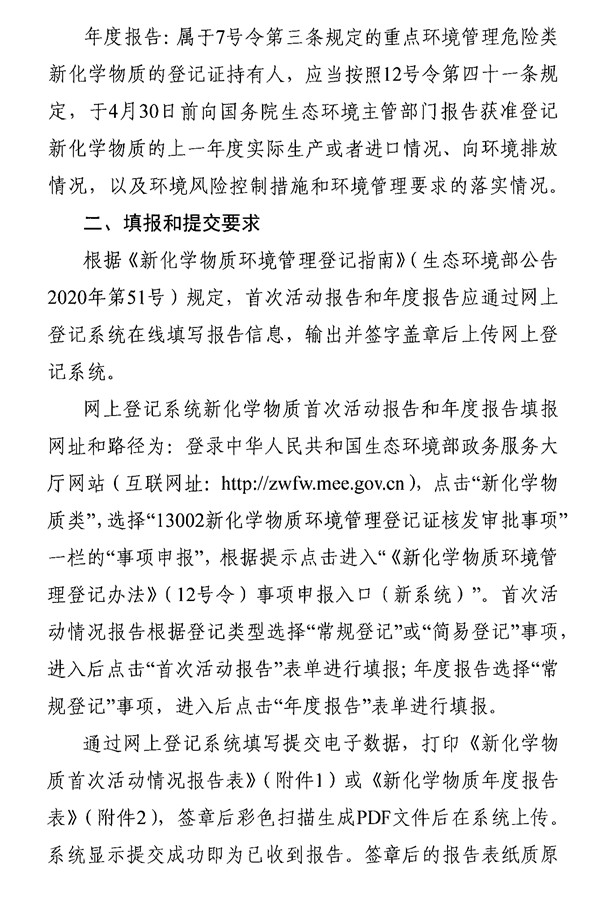 生态环境部发布关于提交新化学物质首次活动报告和2020年度活动报告的通知