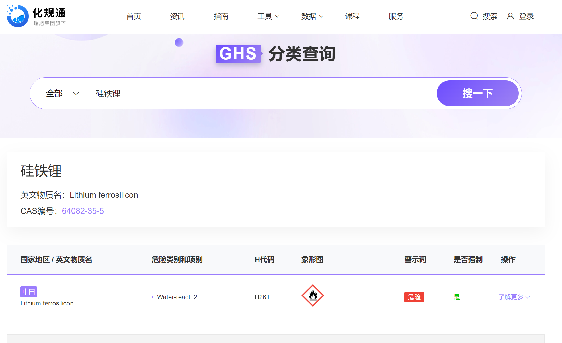 那么我该如何查询一个物质是否属于CMR物质呢?您可以使用瑞旭集团自主研发的化规通GHS分类查询工具,可以免费查询全球17000多个化学物质的GHS分类。