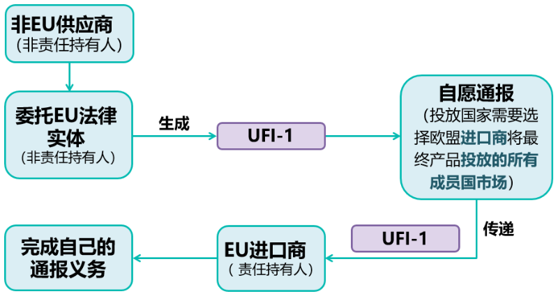 非欧盟的供应商为了保密自己的配方,可以委托欧盟境内的法律实体,完成自愿通报。然后,将完成通报的UFI传递给进口商,就可以避免配方的泄露。