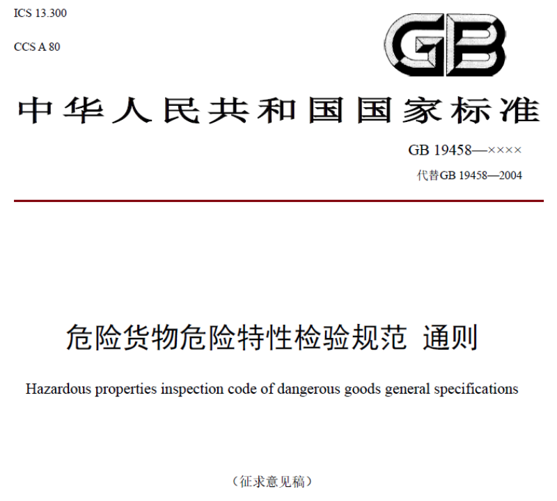 GB 19458-XXXX《危险货物危险特性检验规范 通则》未来会替代了GB 19458-2004。对比旧法规,新法规进行如下调整: