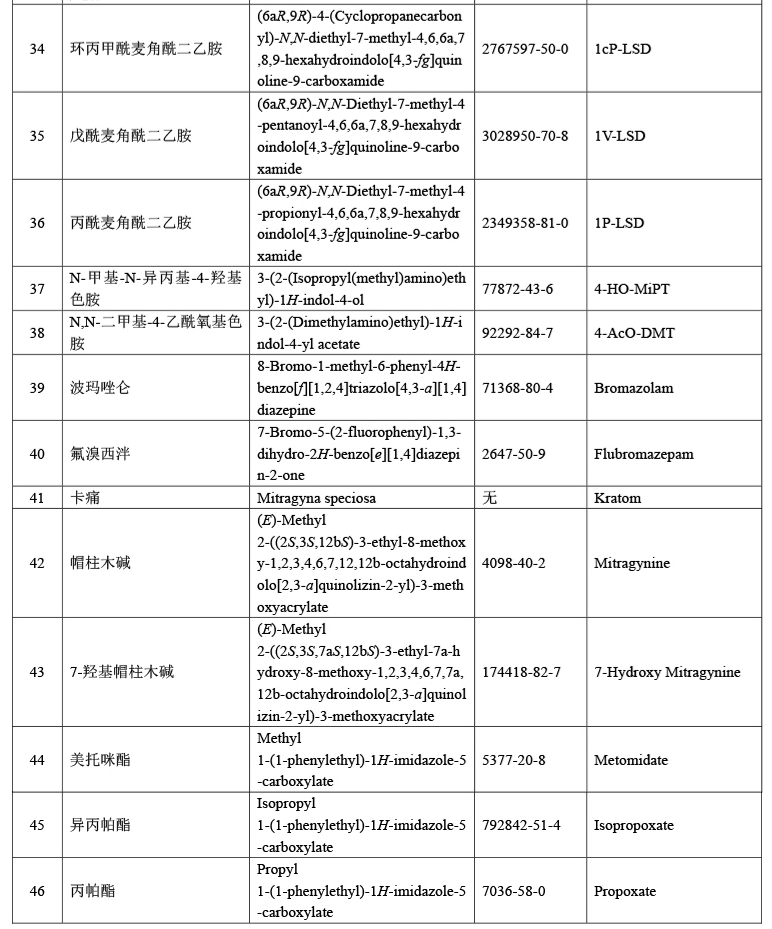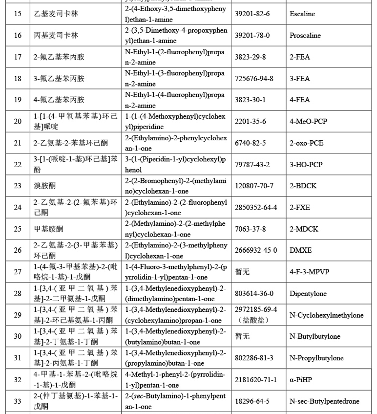 非药用类麻醉药品和精神药品管制品种增补目录