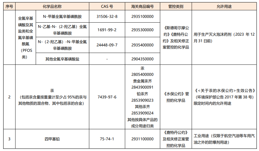 二是 删除我国已淘汰化学物质和已禁止用途。按照《斯德哥尔摩公约》履约进程和《清单》有关规定,删除了《名录》中六溴环十二烷,删减了全氟辛基磺酸及其盐类和全氟辛基磺酰氟(PFOS 类)的允许用途,仅保留了灭火泡沫药剂生产的用途。