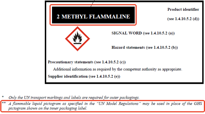 1)在附件7标签要素样例中,删除了组合标签样例中“内包装标签可使用《联合国规章范本》规定的易燃液体象形图替代全球统一制度象形图”的描述。