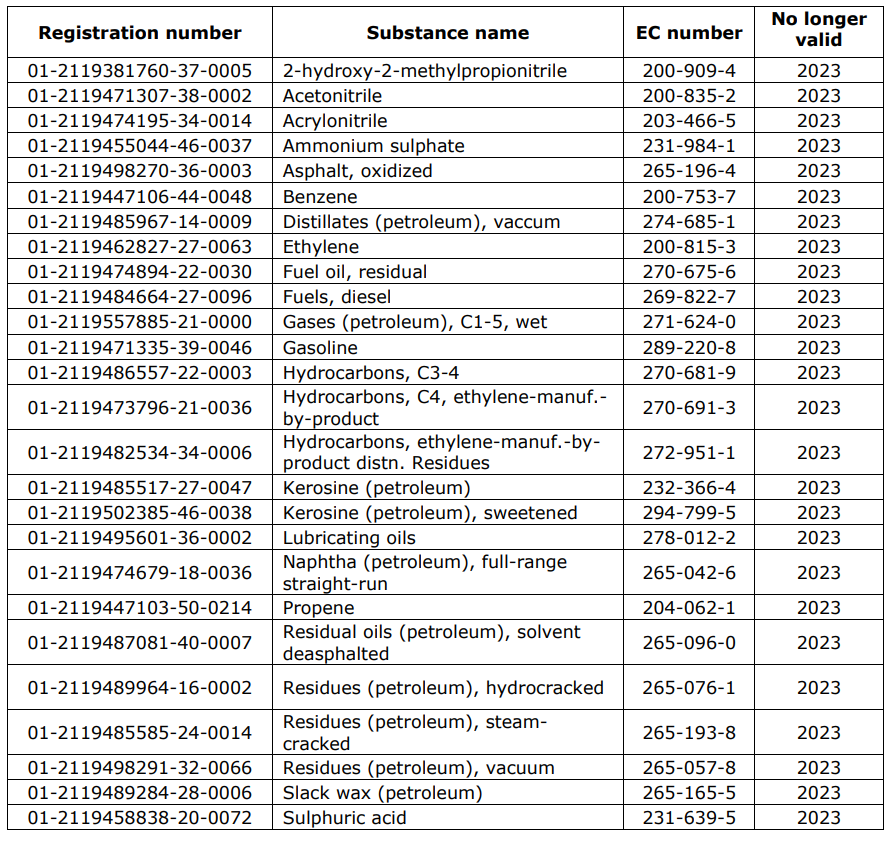 以下为被ECHA临时取消的注册号