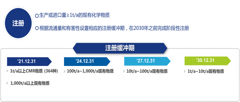 2019年1月1日K-REACH修订案实施,法规规定年吨位大于1吨的现有物质想要在韩国生产或进口,必须完成预注册,并在缓冲期内完成正式注册的工作。