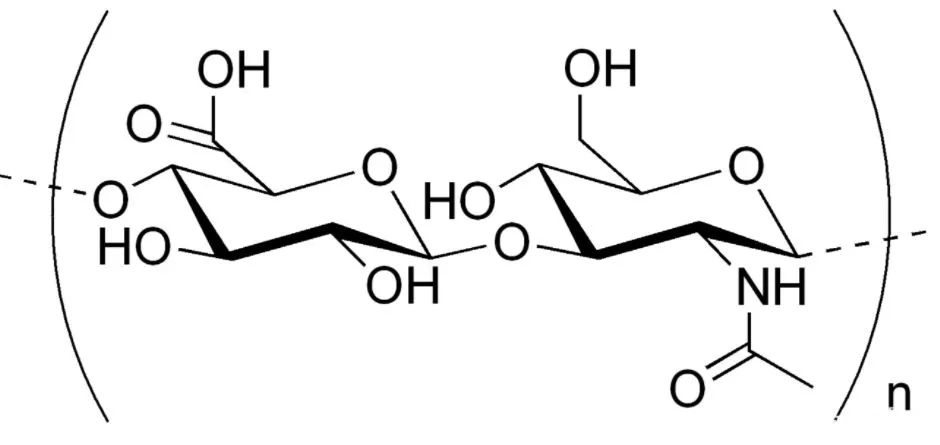 透明质酸(Hyaluronic acid)又名玻尿酸,简称HA,是一种以二糖(由N-乙酰基-D-氨基葡萄糖和β-D-葡萄糖醛酸通过β-1,3-糖苷键连接成二糖衍生物)为重复单元的直链高分子多糖。